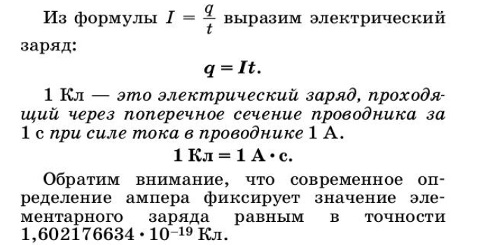Здесь I обозначает силу тока, q — количество электрического заряда, прошедшего через сечение проводника, и t — время, за которое прошел этот заряд. Эта формула отражает определение силы тока — количество заряда, проходящего через сечение проводника в единицу времени.