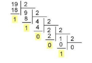 Например, переведём в двоичную систему число 19: