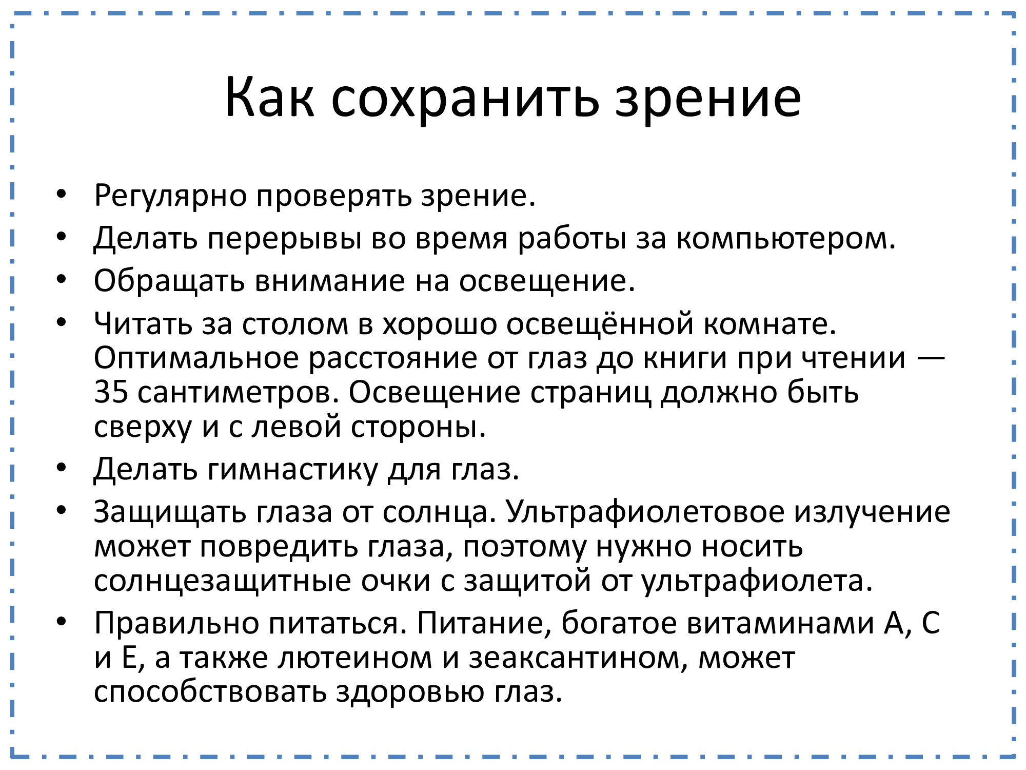 Урок-конференция «Дефекты зрения. Как сохранить зрение»